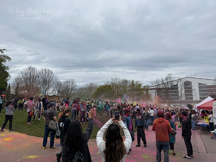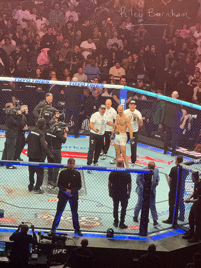 Local man vrooms across the state to attend live mixed martial arts, stopping in Everett to pick up a friend & heading south, where in a sequence of pure comedy, driver (me) braves his too-hot gifted coffee while I-5ing in freeway traffic & is surprised by the lid popping off & splashing a good amount of Americano on the ol’ lap & seat, maintaining his total cool & tactfully pulling napkins from the arm-rest & 3rd-generation utility towel from behind & sopping most, sitting upon absorbers w/ promising results. Conversation carried on, & wet-panted pilot attempted his next sip, w/ the exact same thing reoccurring, to absolute hysteria of circumstances & a perfect opportunity to teach attitude, w/ thankfully successful cloth-drying & safe navigation. 🙌 Once arrived, the pair made their way through the city; seeing people in costumes, heavily painted or pigment-adorned, & initially chalked it up to large population, & soon learned there was a marching protest, which we passed directly through; & as we got nearer to the arena discovered a Hindu spring holiday gathering, w/ music, dancing, & happy vibes.